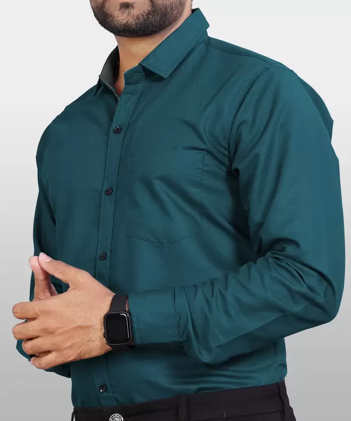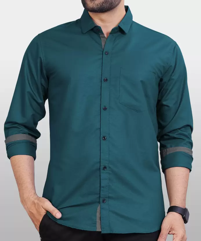 Men Regular Fit Solid Spread Collar Casual Shirt